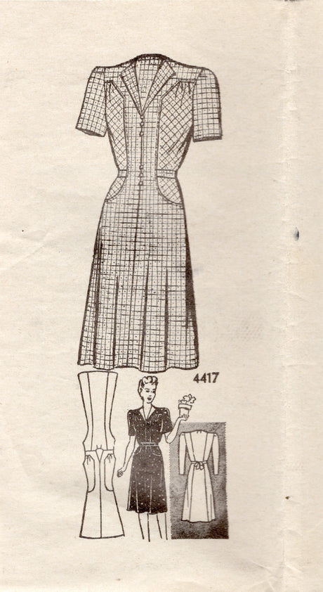 1940's Anne Adams Shirtwaist Dress Pattern with Accent Bodice Panels - Bust 36" - No. 4417