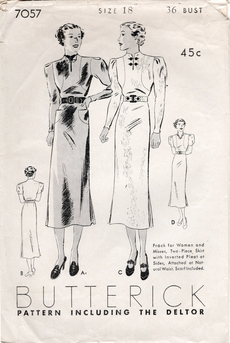 1930's Butterick Yoked Dress with Slim Skirt Pattern - Bust 36" - No. 7057