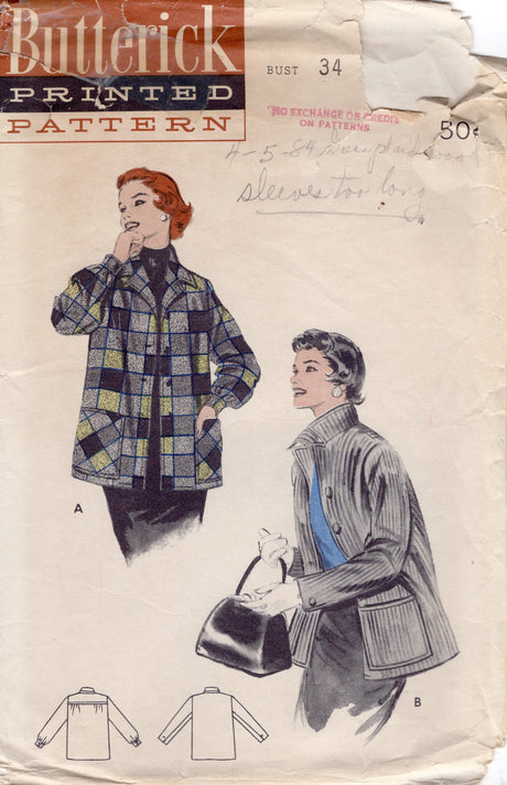 1950's Butterick Man-Tailored Box Jacket Pattern - Bust 34" - No. 7044