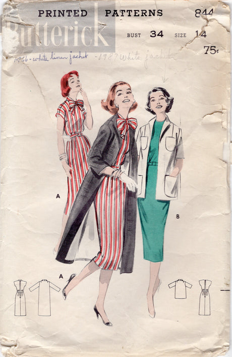 1950's Butterick Sheath Dress and Straight Line Jacket or Coat pattern - Bust 34" - No. 8449