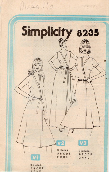 1970's Simplicity Front Wrap Dress pattern - Bust 38" - No. 8235
