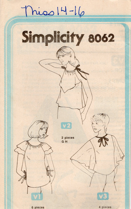 1970's Simplicity Pullover Flowy Top pattern - Bust 36-38" - No. 8062