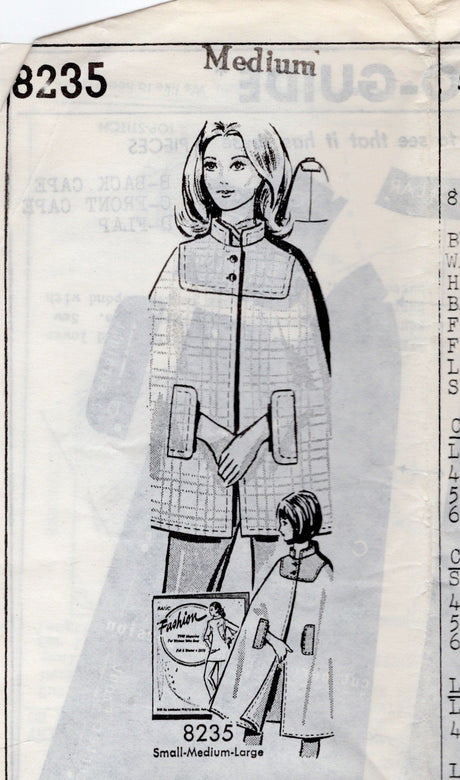 1970's Mail Order Yoked Cape Pattern - Bust 34-36" - No. 8235