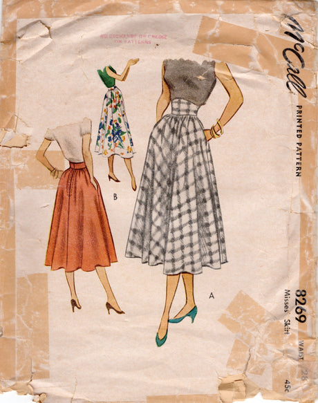 1950's McCall Flared Skirt Pattern with Straight or Raised Waistband - Waist 28" - no. 8269