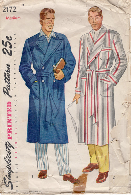 1940's Simplicity Men's Robe Pattern - Chest 38-40" - No. 2172