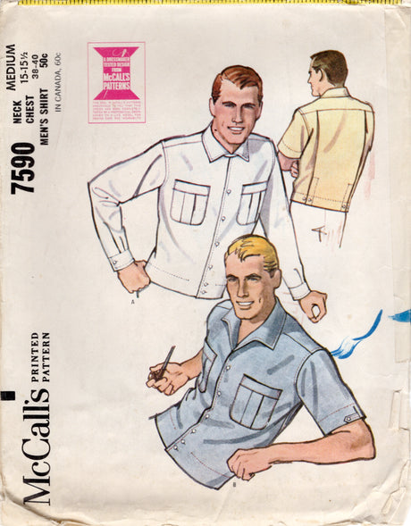 1960's McCall's Men's Button Up Shirt Pattern - Chest 38-40" - No. 7590