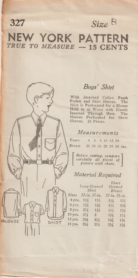 1930's New York Child's Button Up Shirt Pattern - Chest 26" - No. 327
