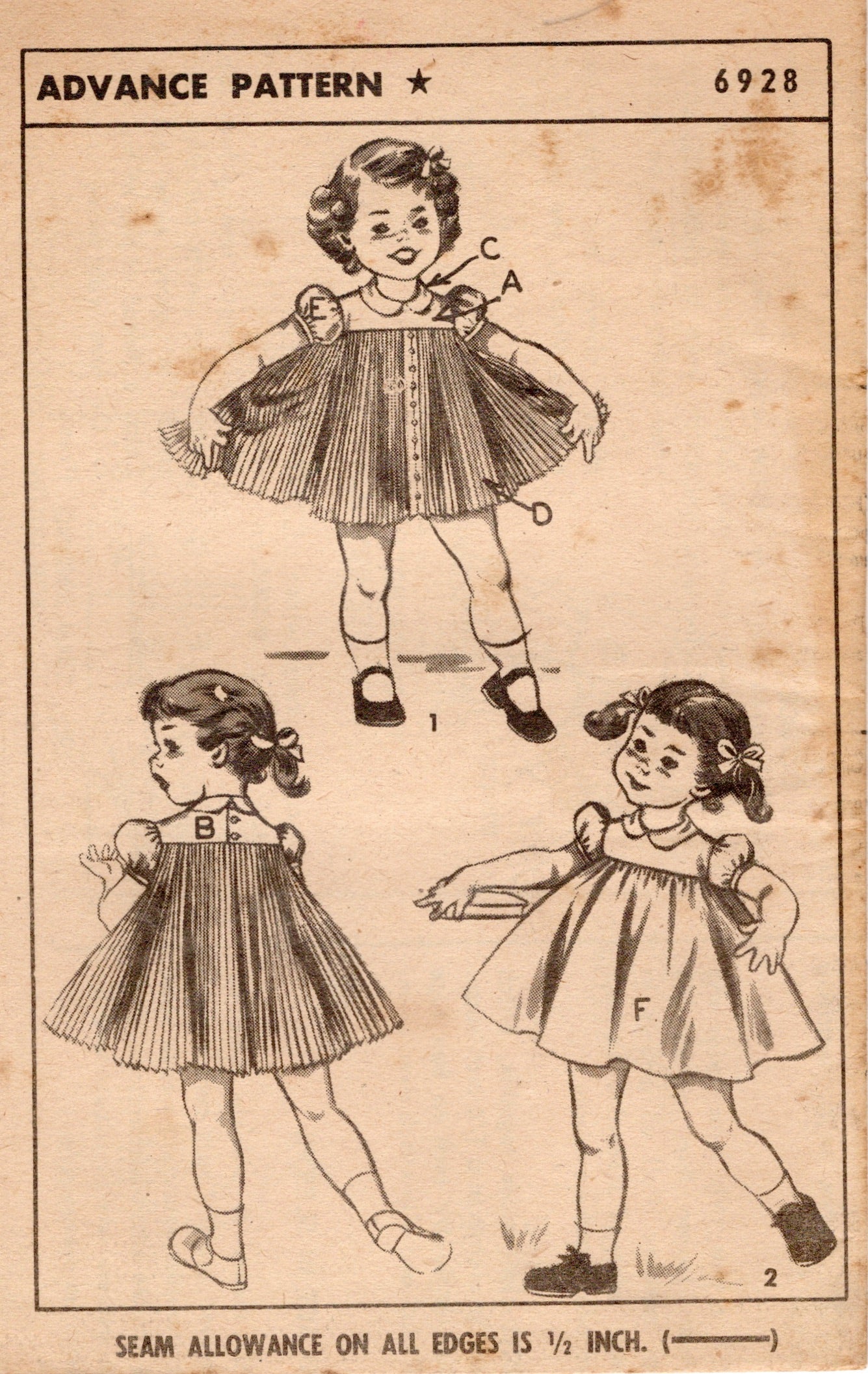 1950's Advance Child's Yoked Dress Pattern - Chest 22" - No. 6928 is backordered and will ship as soon as it is back in stock.