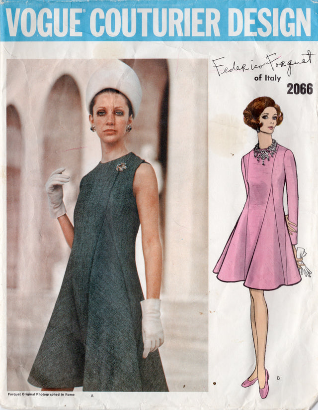 1960's Vogue Couturier Design One Piece Godet Dress by Federico Forquet - Bust 36" - No. 2066