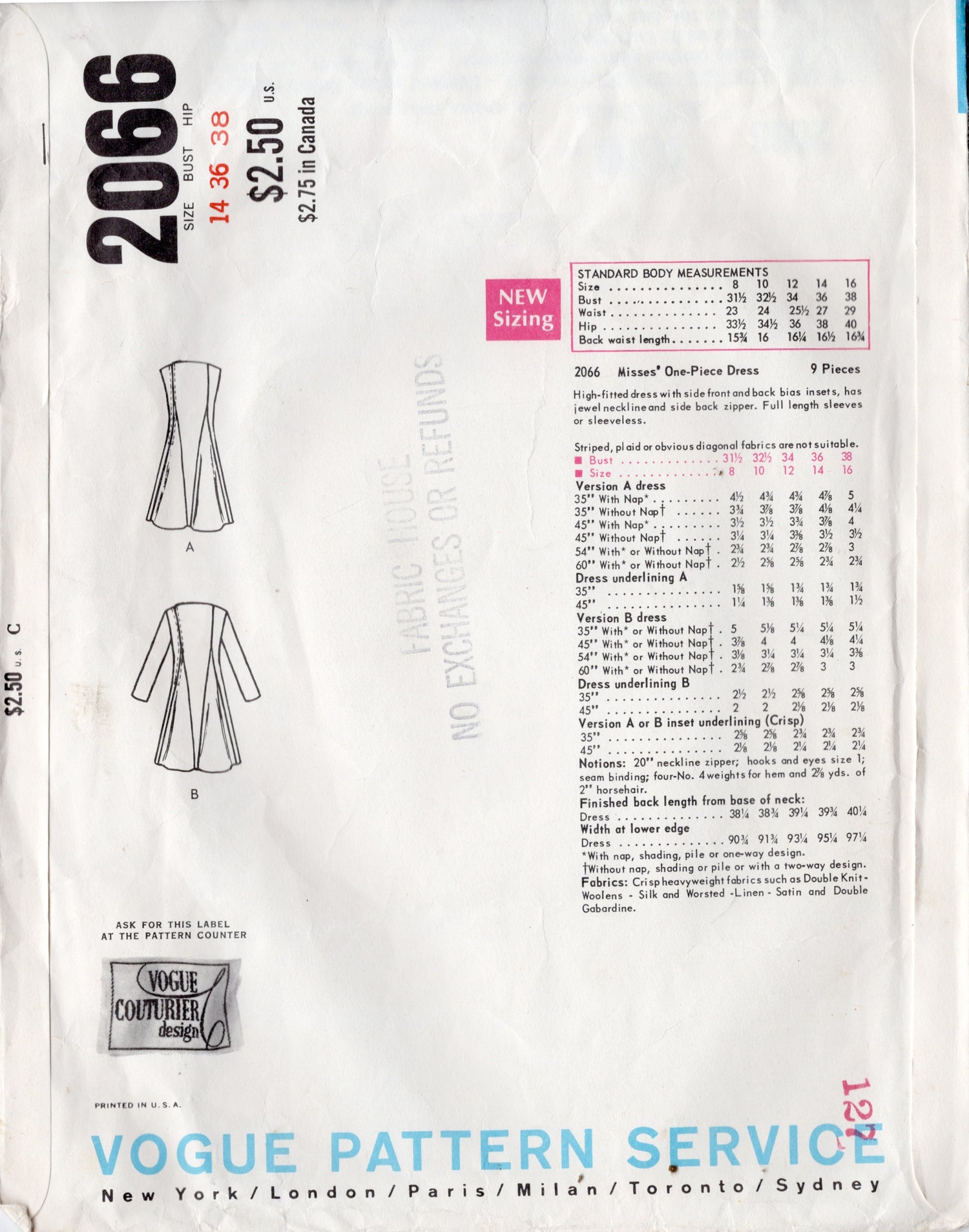 Featured in Vogue Pattern Fashion News January 1969 and Vogue Pattern Book February/March 1969