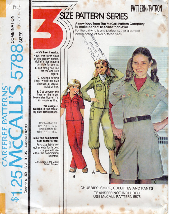 1970's McCall's Child's Shirt, Culottes and Pants Pattern - Chest 30-34.5" - No. 5788 - Size 8.5-10.5-12.5 is backordered and will ship as soon as it is back in stock.
