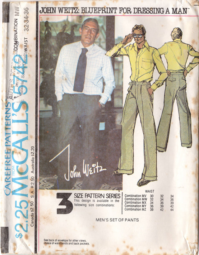 1970's McCall's Men's Set of High Waisted pants - Waist 32-44" - No. 5742 - Waist 30-32-34" is backordered and will ship as soon as it is back in stock.
