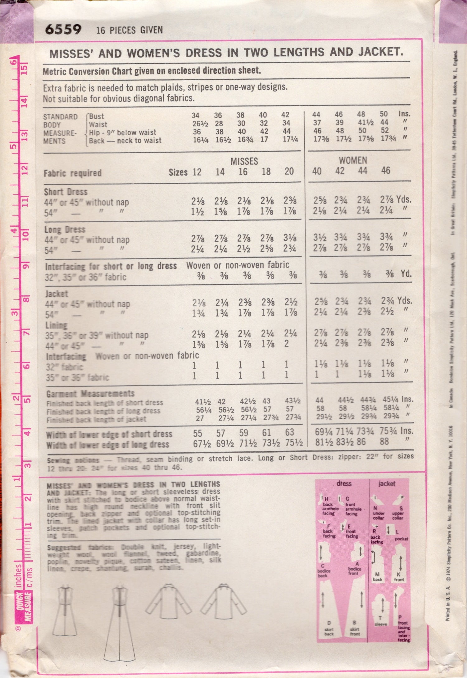 1970's Simplicity Midi or Maxi Dress with Empire Waist and Slit Neckline and Jacket Pattern - Bust 36 - 38" - No. 6559 is backordered and will ship as soon as it is back in stock.
