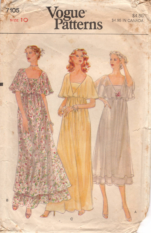 1970's Vogue Evening Gown with Cape sleeves- Bust 32.5" - No. 7105 is backordered and will ship as soon as it is back in stock.