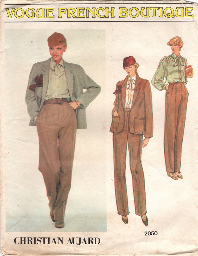 1970's Vogue French Boutique Two Piece Suit with Pussy Bow Blouse Pattern - Christian Aujard - Bust 32.5" - No. 2050 is backordered and will ship as soon as it is back in stock.
