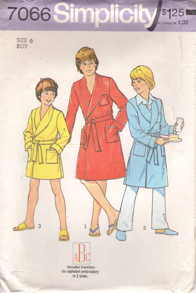 1970's Simplicity Child's Robe with Pockets Pattern - Size 6 - Chest 25" - No. 7066 is backordered and will ship as soon as it is back in stock.