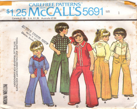 1970's McCall's Child's Western Shirt, and Yoked Pants Pattern - Chest 20-25" - No. 5691