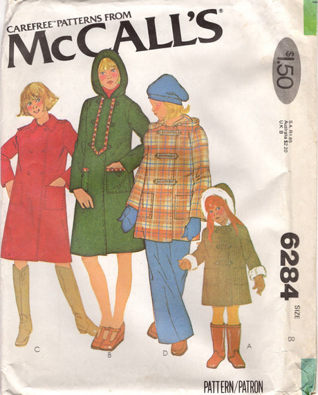 1970's McCall's Child's Coat Pattern with or without Hood - Size 8 - Chest 27" - No. 6284