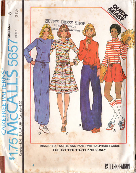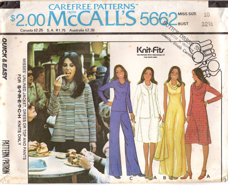 1970's McCall's Cowl Neck Dress or Top, Unlined Jacket and Pants pattern - Bust 32.5-34" - No. 5662