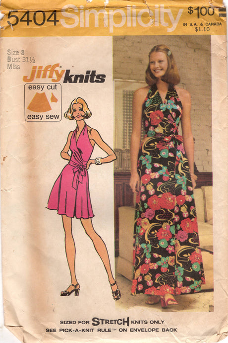 $895Unit price /Unavailable1970's Simplicity Jiffy Gently Pleated Wrap Halter Midi or Maxi Dress - Bust 31.5" - No. 5404