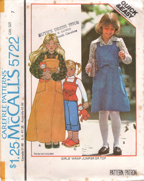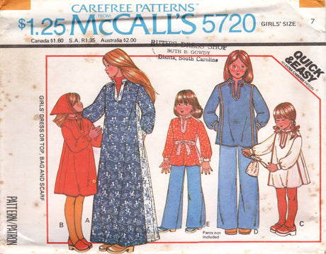 Low stock (3 units)$1095Unit price /Unavailable1970's McCall's Back Wrap Dress, TUnic and Top Pattern - Child 7-14 - No. 5722