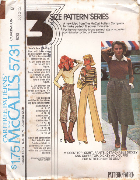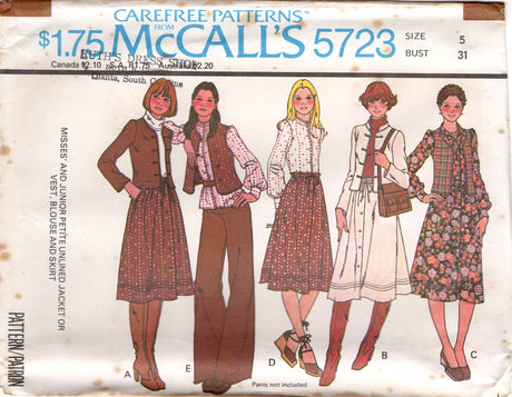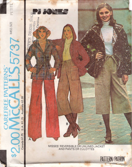 1970's McCall's Unlined Jacket, Culotte or Pants pattern - Bust 31.5-34" - No. 5654