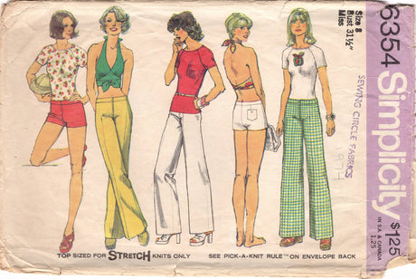 $1295Unit price /Unavailable1970's Simplicity Halter Top, Raglan Sleeve Blouse, Shorts or Pnats - Bust 31.5" - No. 6354