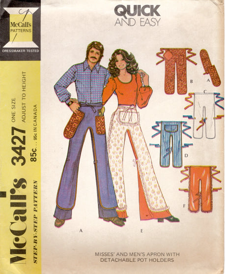 Very low stock (1 unit)$995Unit price /Unavailable1970's McCall's Pant-Leg Apron Pattern with Detachable Pot Holders - One Size - No. 3427