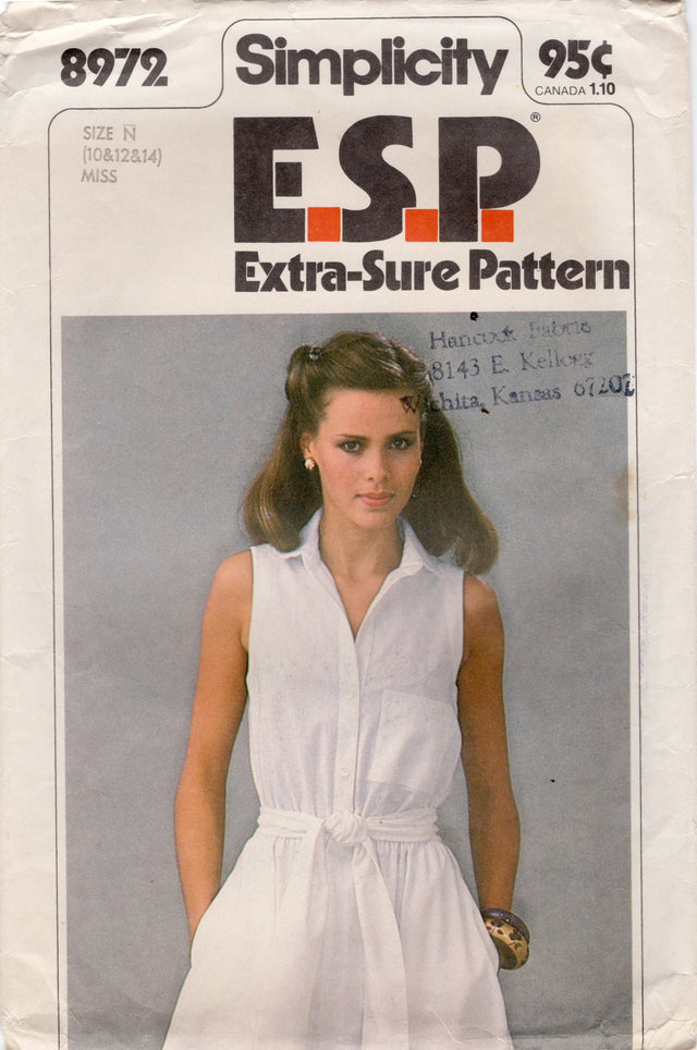 1980’s Simplicity Sleeveless Shirtwaist Dress Pattern- Bust 32.5-36” - No. 8972 is backordered and will ship as soon as it is back in stock.