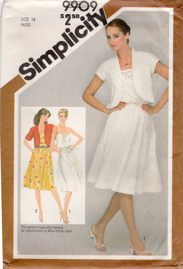 1980’s Simplicity Sun Dress with Thin straps and Bolero Pattern- Bust 36” - No. 9909 is backordered and will ship as soon as it is back in stock.