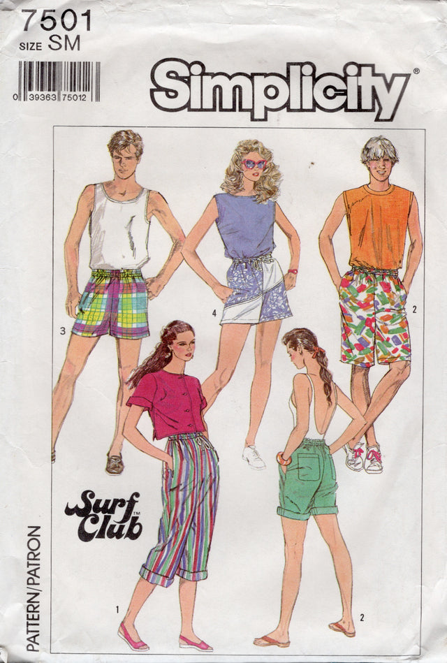 1980's Simplicity SURF CLUB Surfer Shorts in 3 Lengths Pattern – Waist 25-26.5" - No. 7501 is backordered and will ship as soon as it is back in stock.