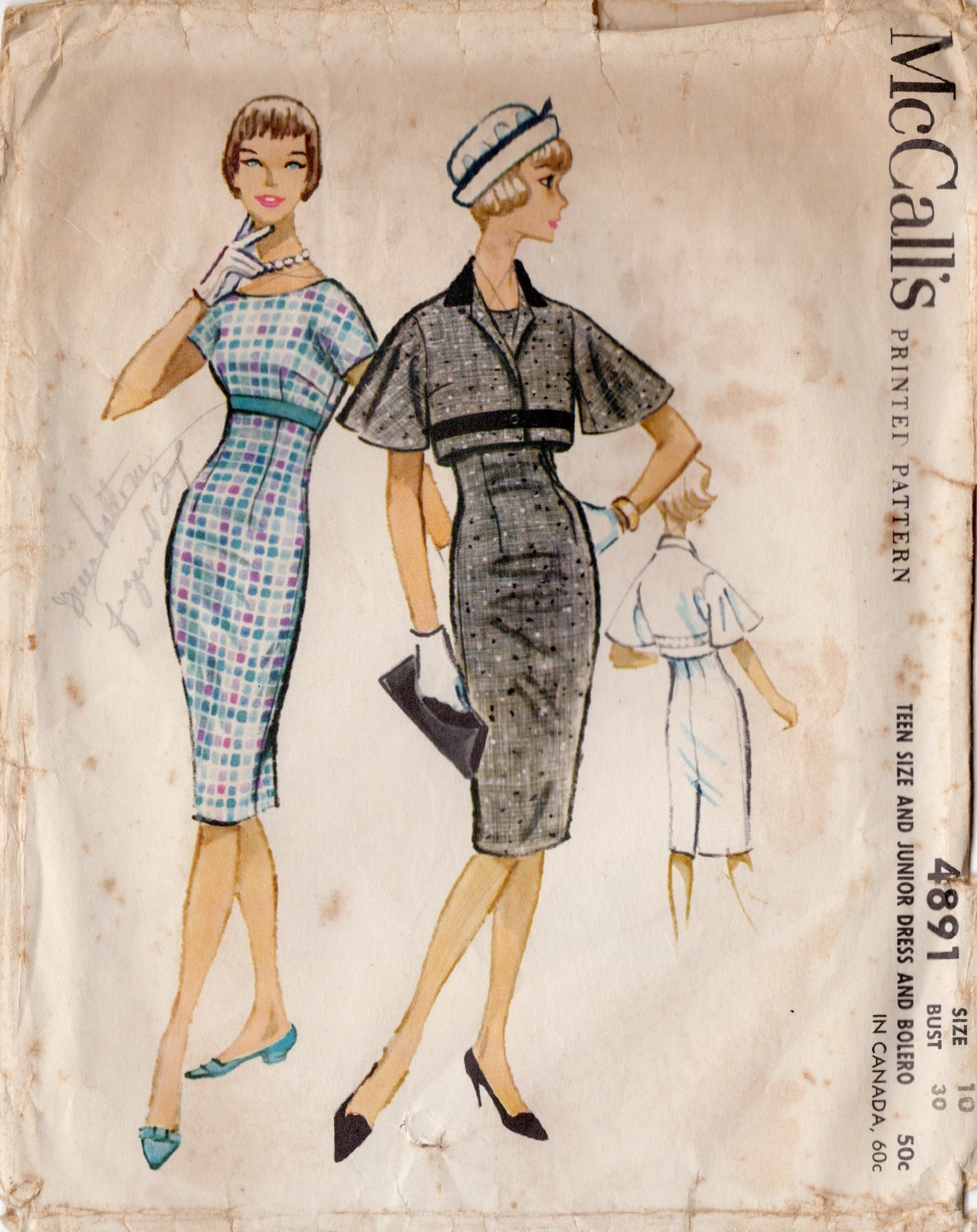 1950's McCall's One Piece Sheath Dress and Bolero Jacket Pattern with Bell Sleeves - Bust 30" - No. 4891 is backordered and will ship as soon as it is back in stock.