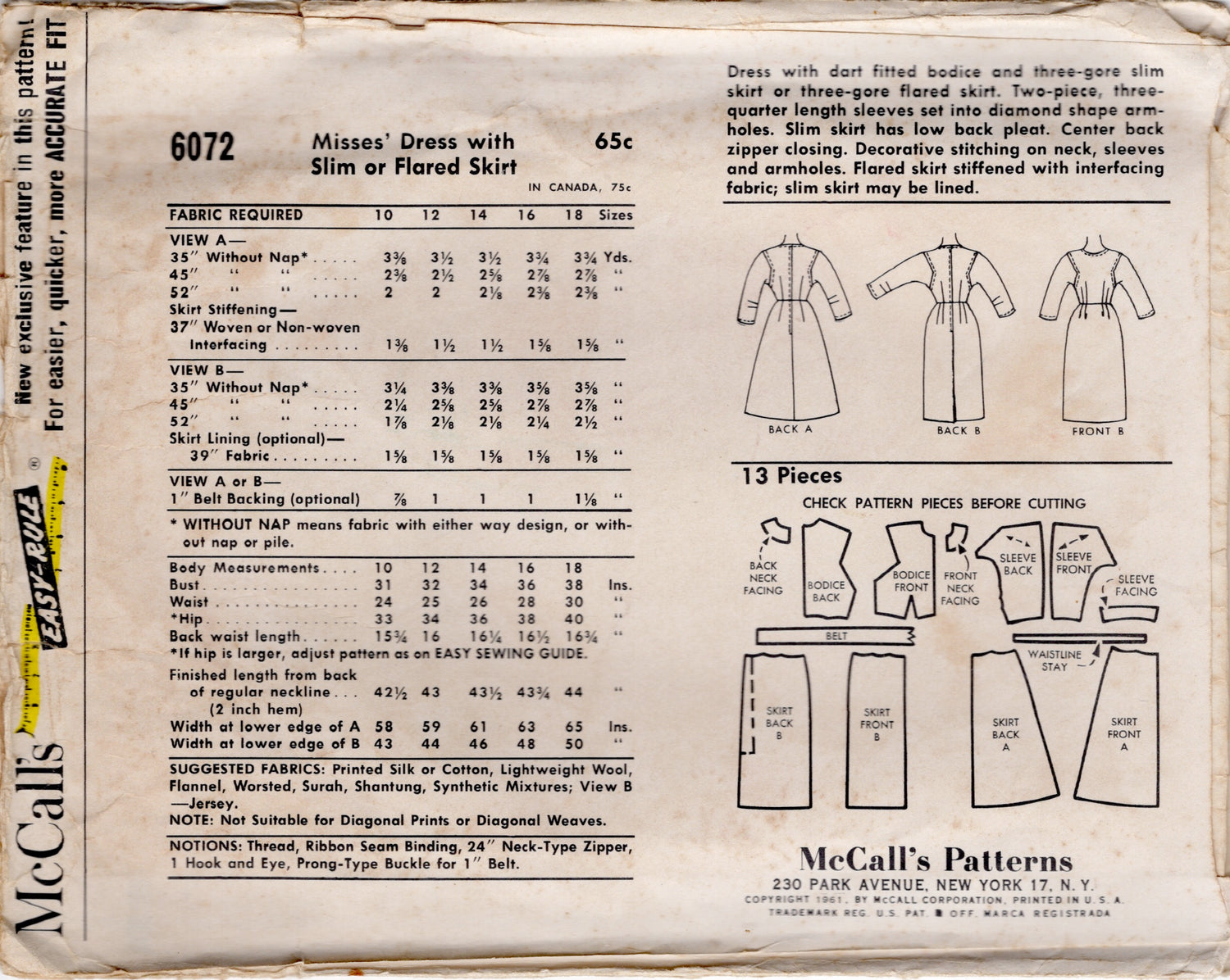 McCall's pattern circa 1961