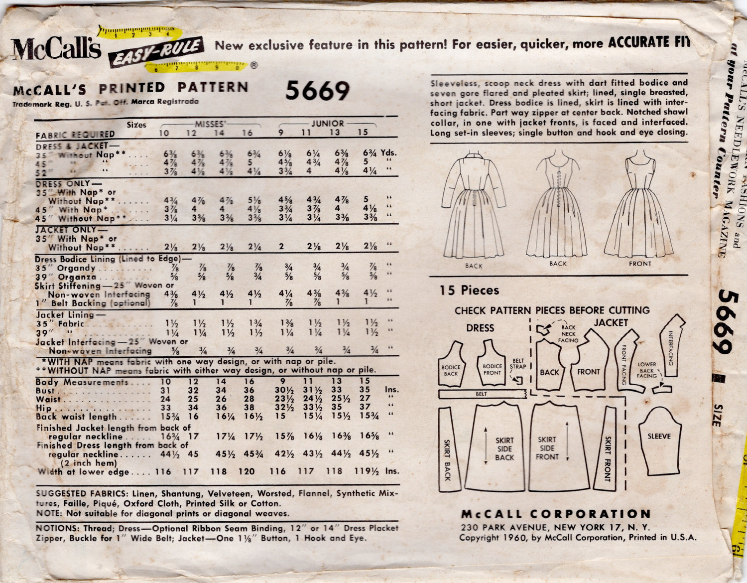 1960's McCall's One Piece Fit and Flare Dress and Bolero Jacket - Bust 34" - No. 5669 is backordered and will ship as soon as it is back in stock.