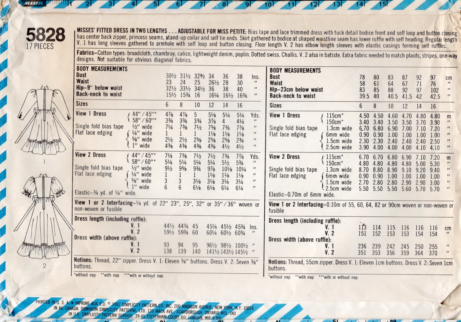 1980's Simplicity One Piece Dress Pattern with Leg of Mutton Sleeves - Gunne Sax - Bust 31.5" - No. 5828 is backordered and will ship as soon as it is back in stock.