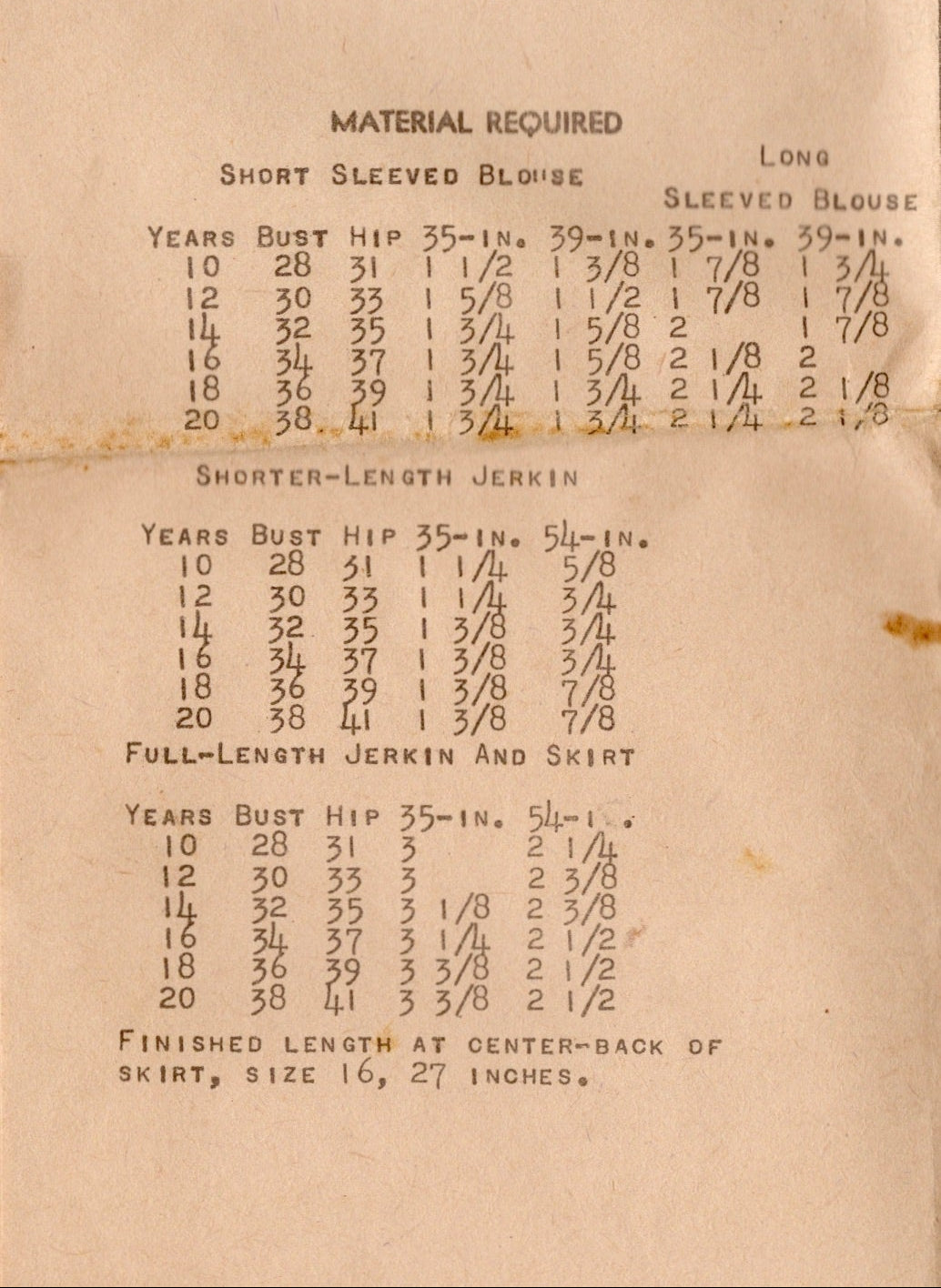 1940's Mail Order Blouse, Vest and 6 Gore Skirt Pattern - Bust 34" - No. 3301 is backordered and will ship as soon as it is back in stock.