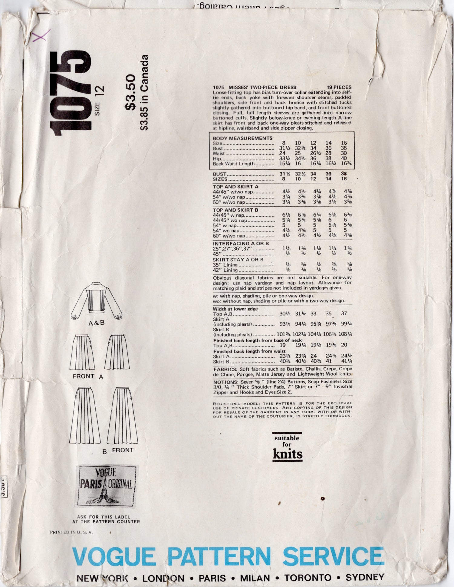 Vogue Paris original pattern circa 1974