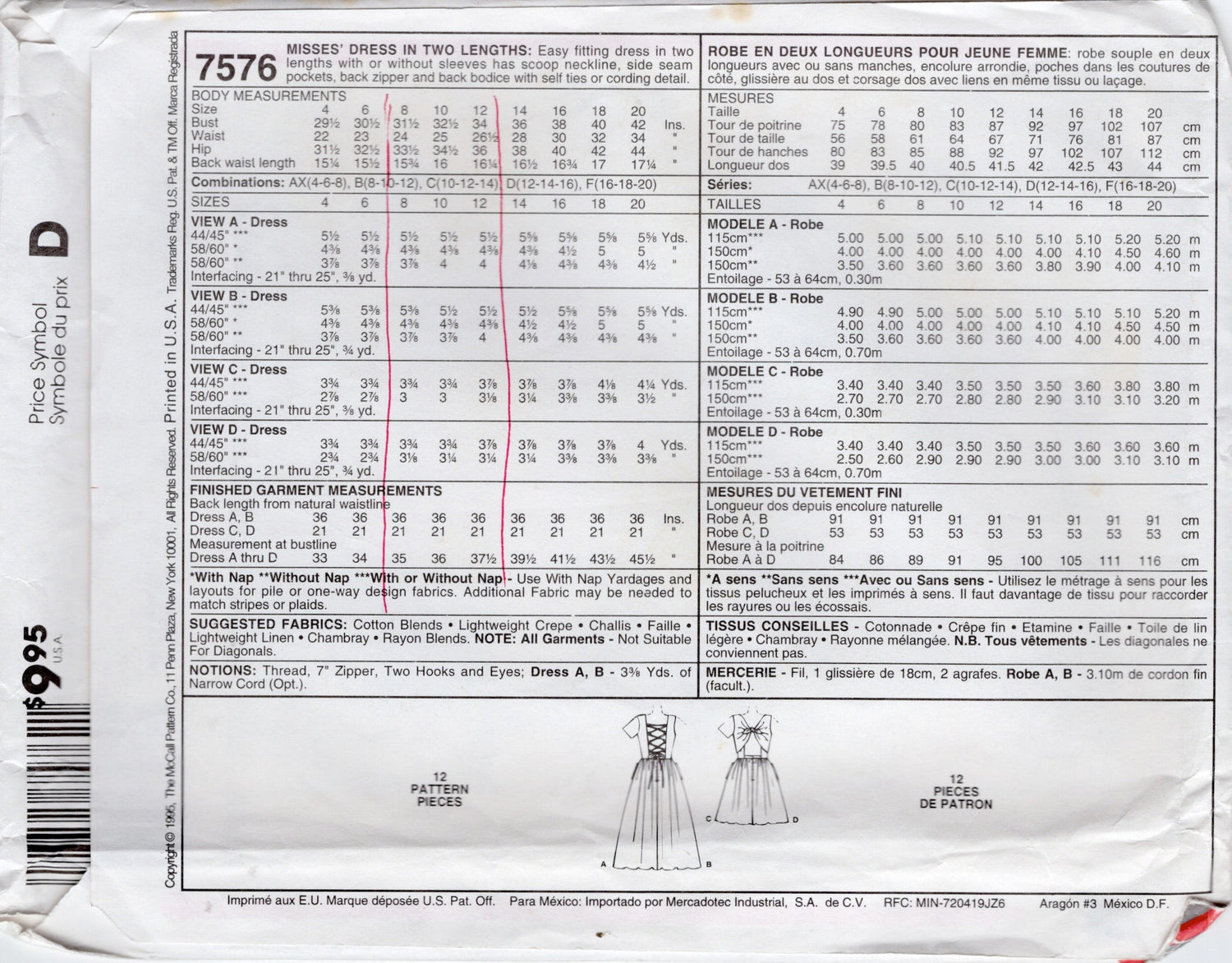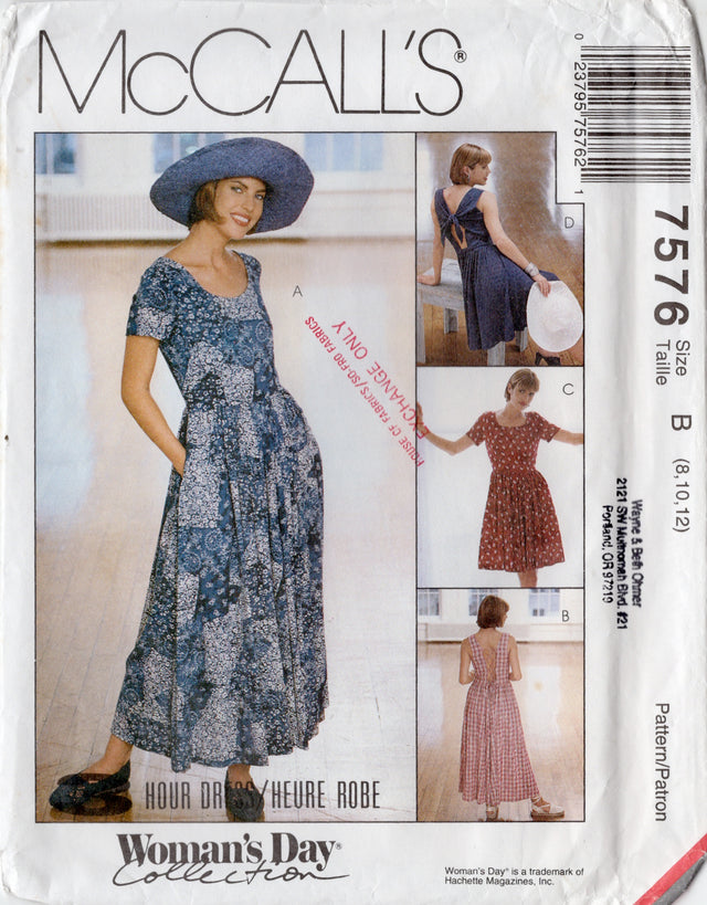 1990's McCall's Lace Up Back Scoop Neck Dress Pattern - Bust 31.5-34" - No. 7576