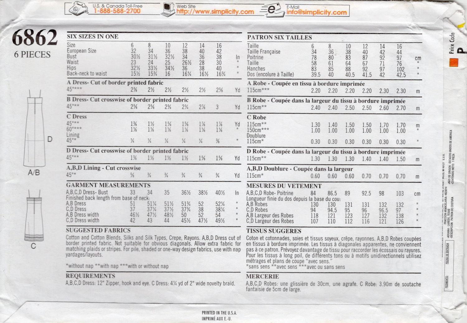 1990's New Look Midi or Maxi Empire Waist Dress Pattern - Bust 30.5-38" - No. 6862 is backordered and will ship as soon as it is back in stock.