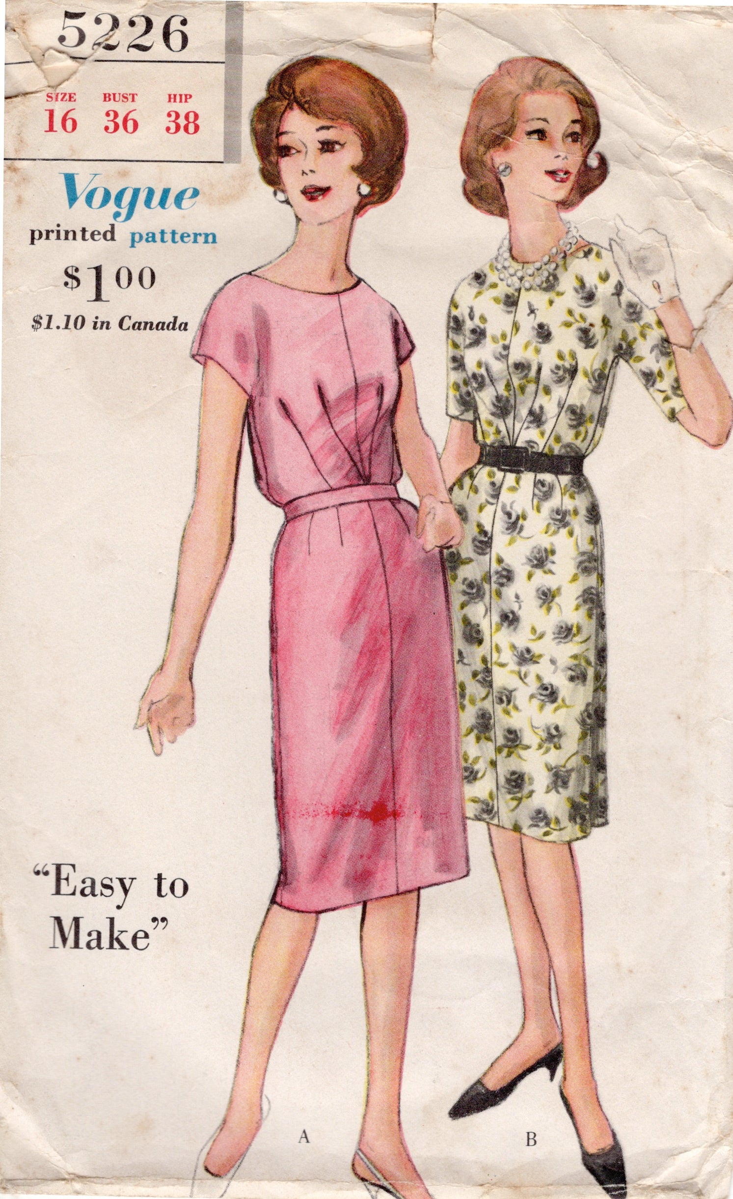 1960's Vogue Sheath Dress with 4 Oversize Darts - Bust 36" - No. 5226 is backordered and will ship as soon as it is back in stock.
