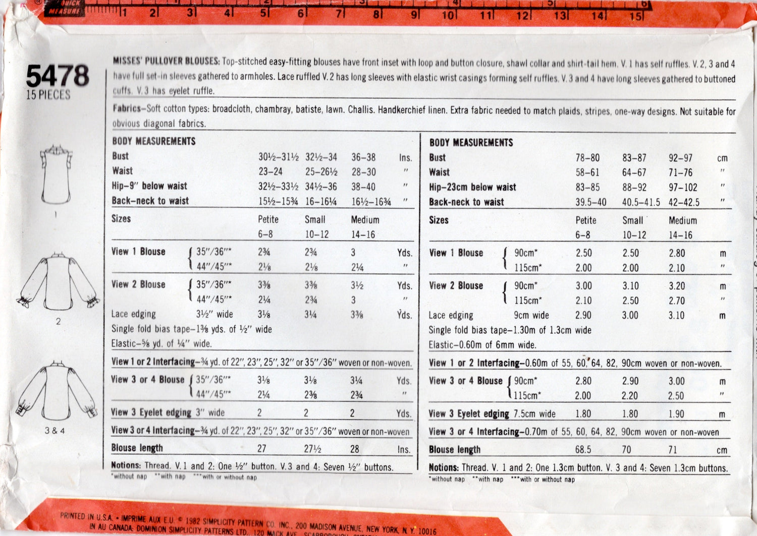 1980's Simplicity Pullover Blouse Pattern With Flutter or Long Sleeves - Bust 36-38" - No. 5478 is backordered and will ship as soon as it is back in stock.