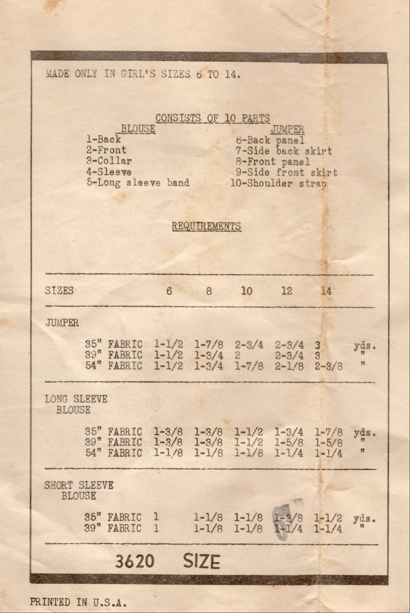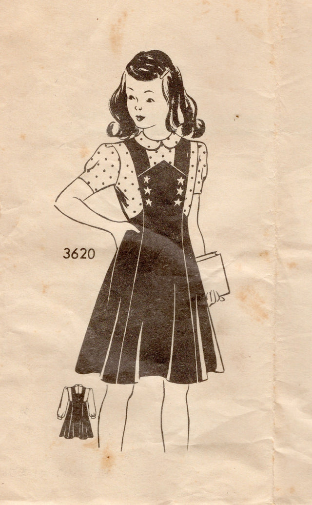 1940's American Weekly Child's Pinafore Dress and Blouse Pattern - Chest 24" - No. 3620