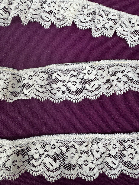 $395Unit price /Unavailable1970’s Cream Scallop Floral Edge Ruffle Lace - Nylon - No. GR-9003 - BTY