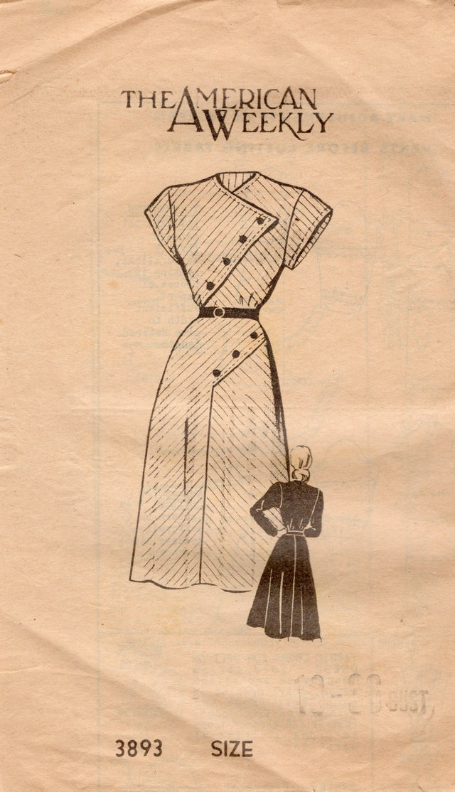 1940's American Weekly Crossover Front Bodice and Matching Skirt One Piece Dress Pattern - Bust 36" - No. 3893 is backordered and will ship as soon as it is back in stock.