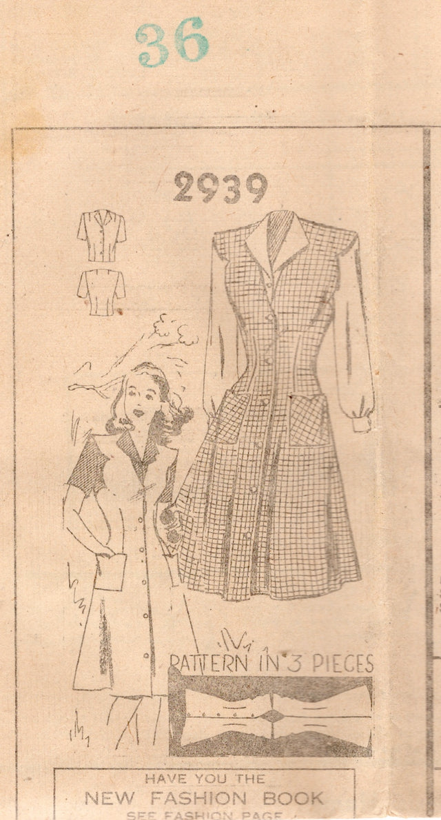 1940's Mail Order Button Up Jumper Dress and Blouse Pattern - Bust 36" - No. 2939 is backordered and will ship as soon as it is back in stock.