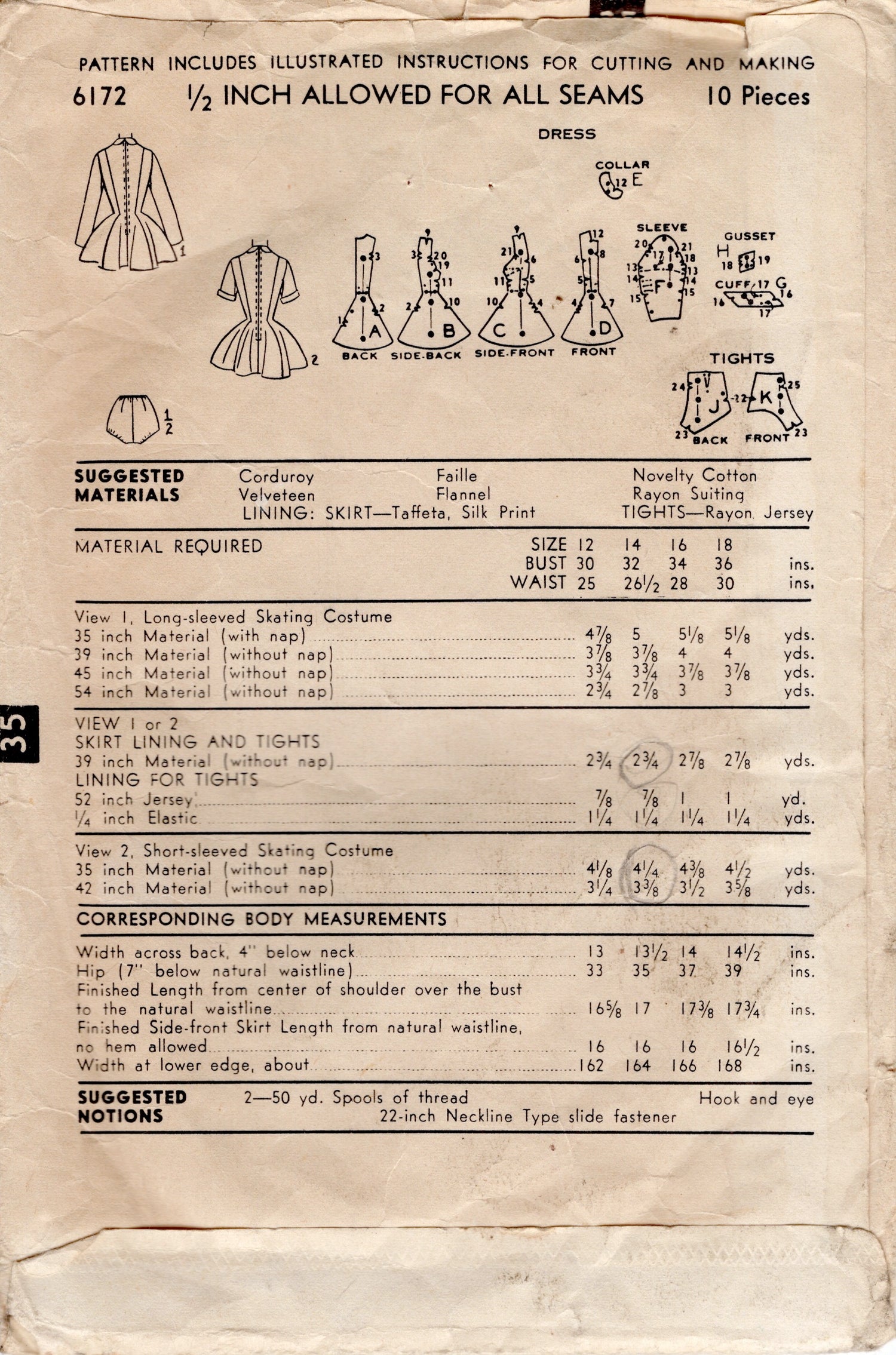 1950's Advance Skating Costume or Princess Line Dress Pattern - Bust 32" - No. 6172 is backordered and will ship as soon as it is back in stock.