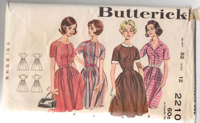 1960's Butterick One-Piece Shirtwaist Dress pattern - Bust 32" - No. 2210 is backordered and will ship as soon as it is back in stock.