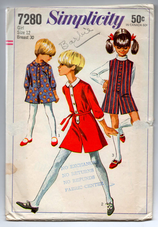 1960's Simplicity Girl's Jumper or Dress - Breast 30" - Size 12 - No. 7280 is backordered and will ship as soon as it is back in stock.