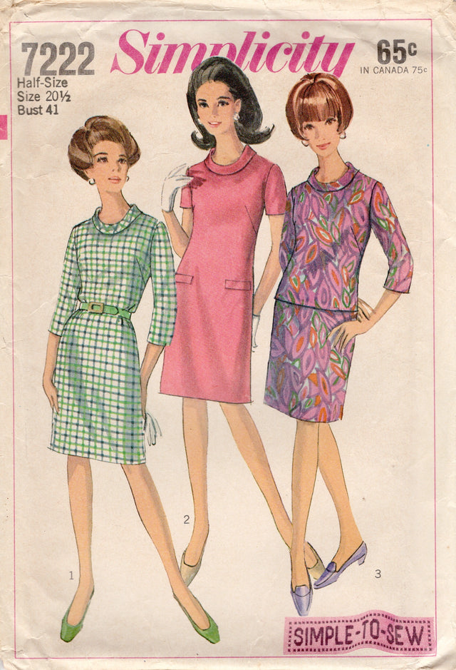 1960's Simplicity Sheath Dress or Tunic and Skirt Pattern - Bust 41" - No. 7222 is backordered and will ship as soon as it is back in stock.