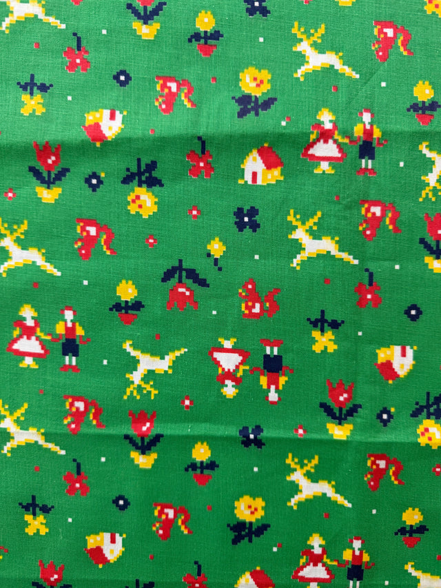 1960’s Dutch Novelty Print Green Cotton Fabric - P259